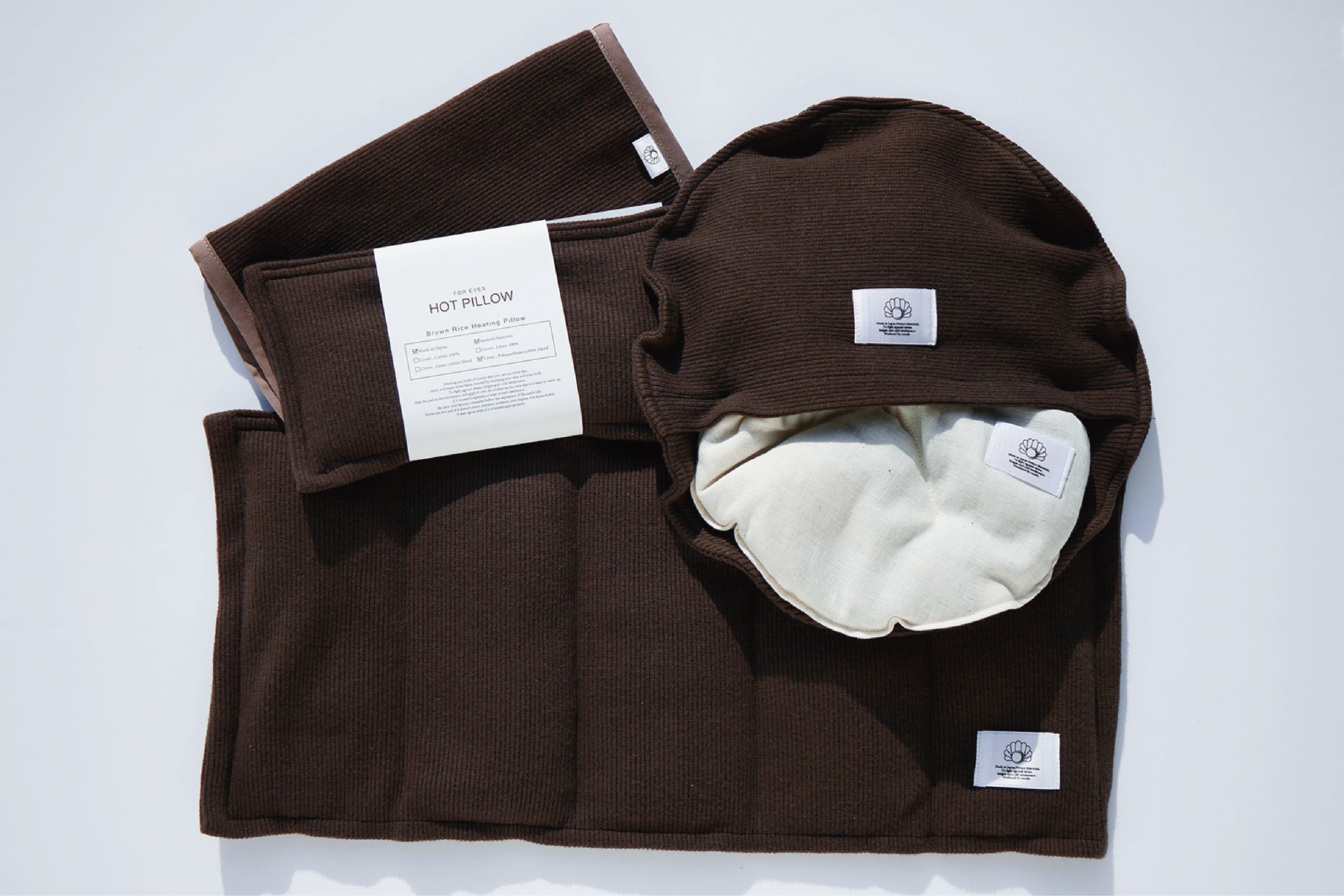COCOFA 玄米カイロ・目元用&カバー【リブニットチョコ】